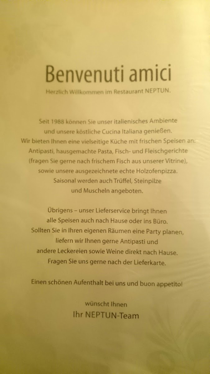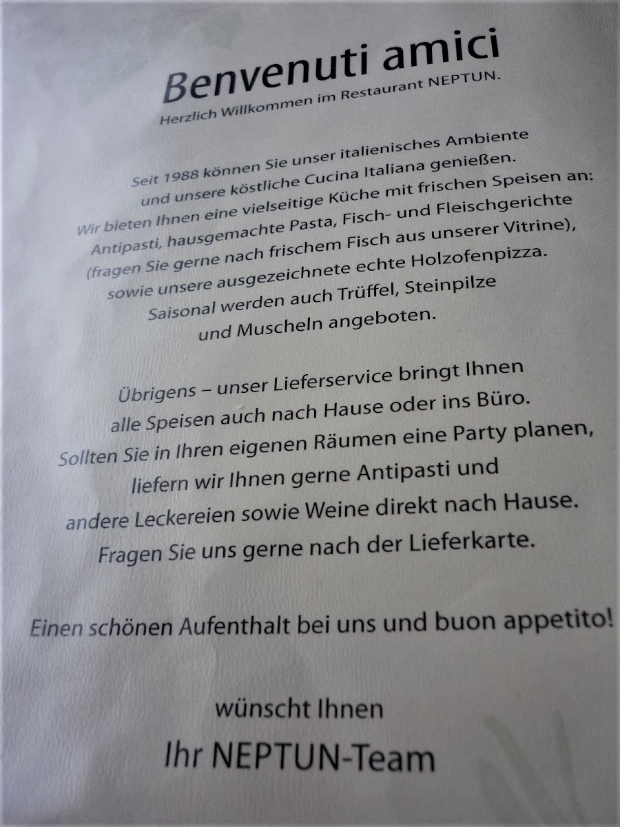 At Ristorante Pizzeria Neptun, located in the heart of München on Lüderitzstraße 1, you can dive into a delightful mix of authentic Italian dishes and wood-fired pizza. The menu features a wide selection of mouthwatering options, from classic pizzas topped with fresh, high-quality ingredients to rich pastas that transport you straight to Italy. Whether you're craving something hearty like lasagna or a lighter bite like a crisp salad, there's something for everyone. The restaurant’s warm and inviting atmosphere makes it the perfect spot to enjoy a meal with family and friends. You'll feel right at home as you explore a menu filled with flavors that bring a true taste of Italy to Germany.